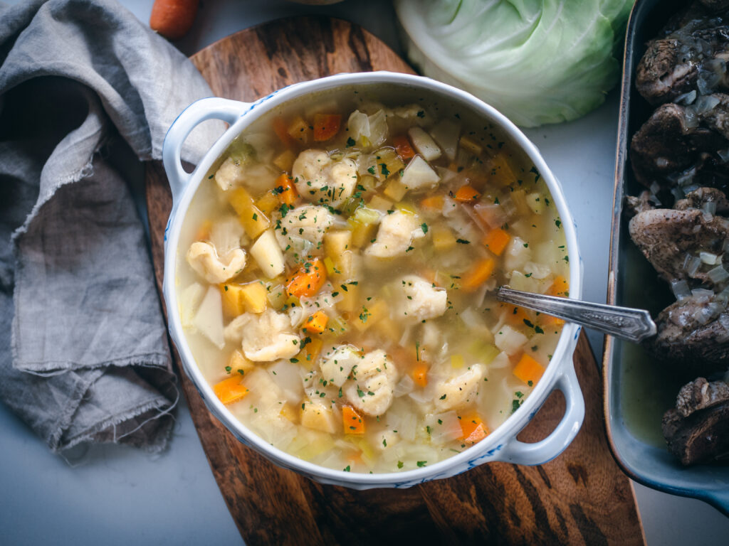 The meat is typically beef or lamb, though some might use pork. The vegetables used in the soup are also telling of the season – any combination of carrots, onions, cabbage, leeks, celeriac, rutabaga, or parsnips. In addition to the vegetables, flour dumplings also known as melboller, krummer, klotboller, are added in. These buttery dumplings have a hint of cardamom that really add to lusciousness of this simple yet flavorful soup.