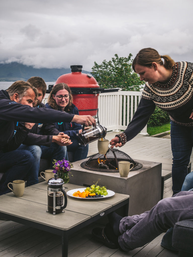 As the day drew on, we all met up again for one last dinner together at one of the homes of the family. As the clouds parted and made way for a few rays of sunshine, we feasted on salmon, halibut, tasty sides and Ida’s famous rhubarb cake before sitting by the warmth of the fire with coffee as the evening hours rolled on. We proceeded to talk about life on island and it became evident that these types of gatherings are a common occurrence, with neighbors and cousins stopping by here and there to have a drink or give a quick greeting.