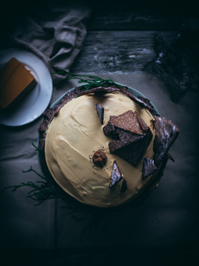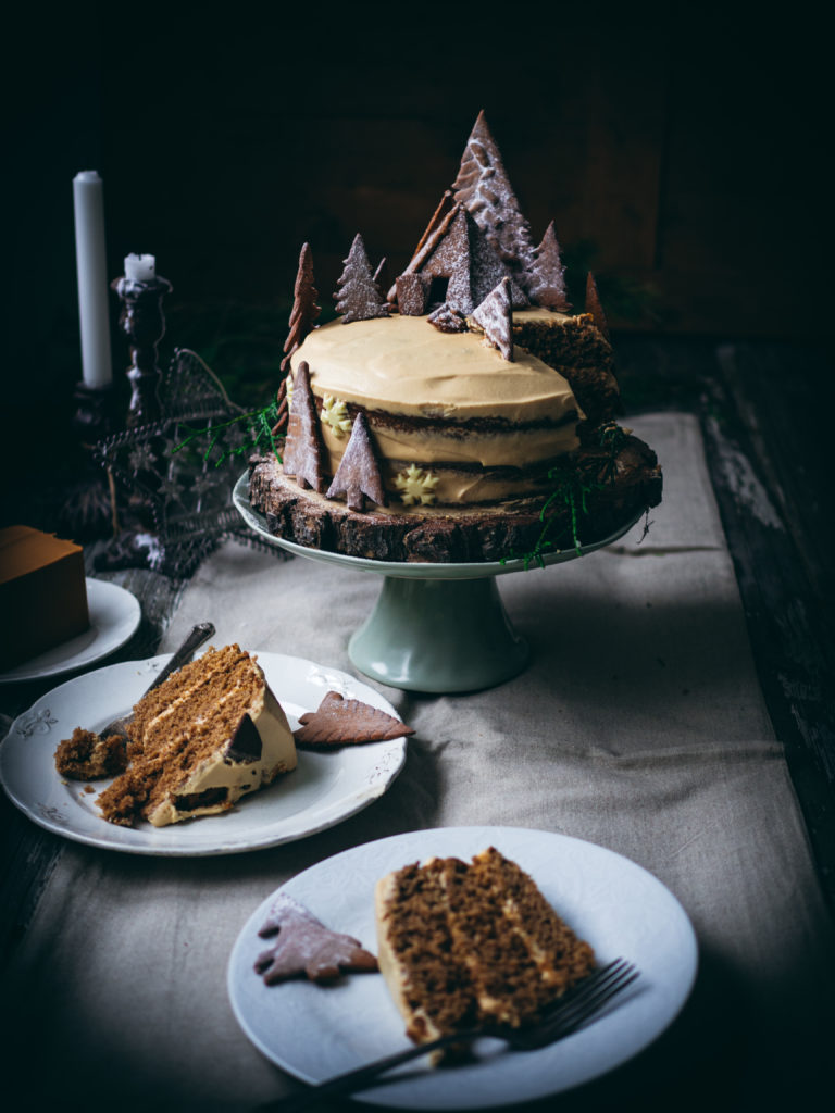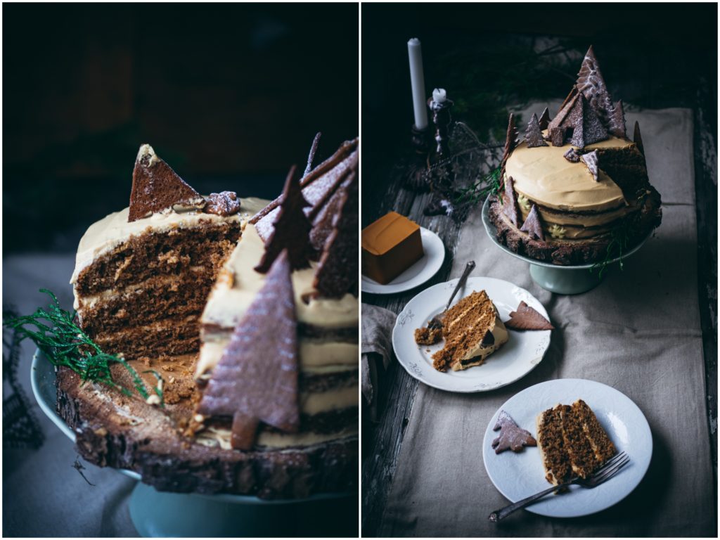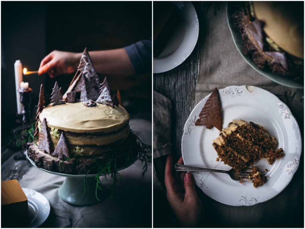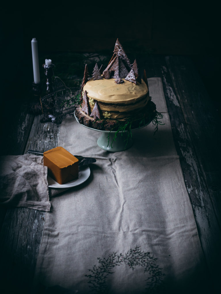 And it’s in this world where I ventured for the last Norwegian brown cheese recipe of the year – Layered Brunost Pepperkake Cake. I wanted to evoke the magic and sense of kos and hygge you will find in mountains of Norway as you wander through spruce and pine trees to reach a clearing to settle under the vast starlit sky.
