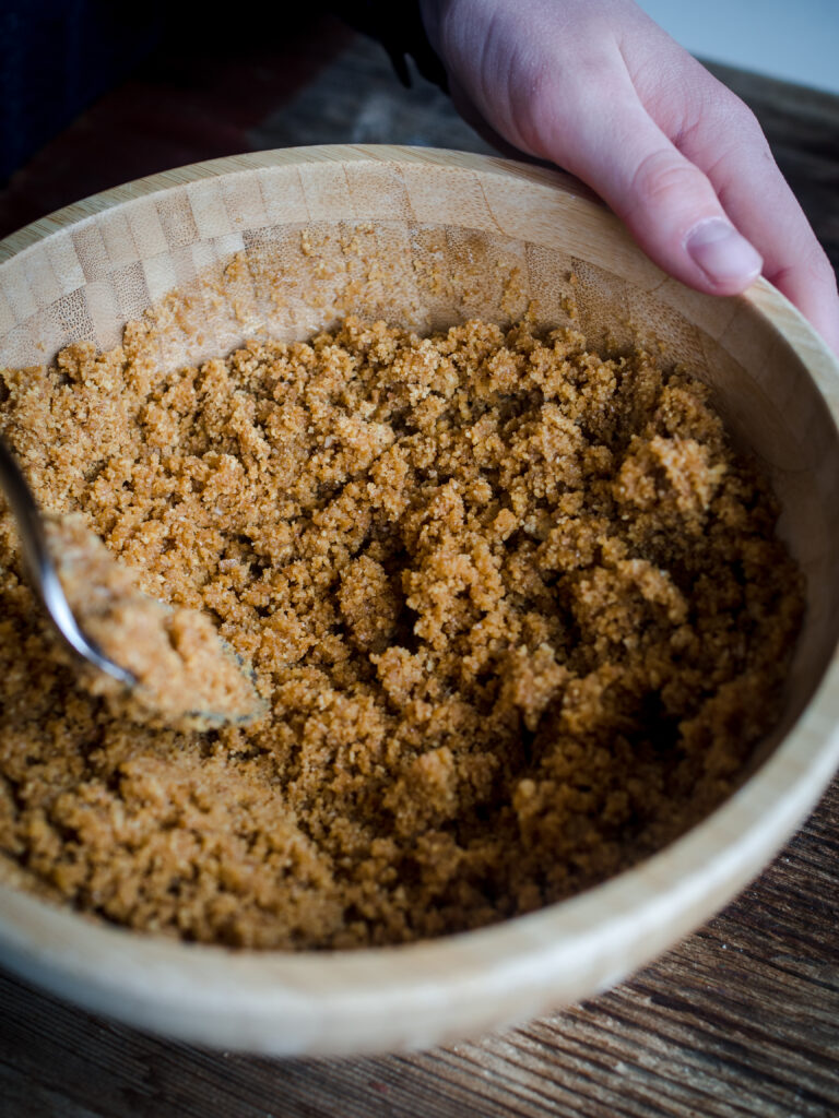 - ½ pound (225 g) digestive biscuits, roughly crushed (or another favorite cookie)