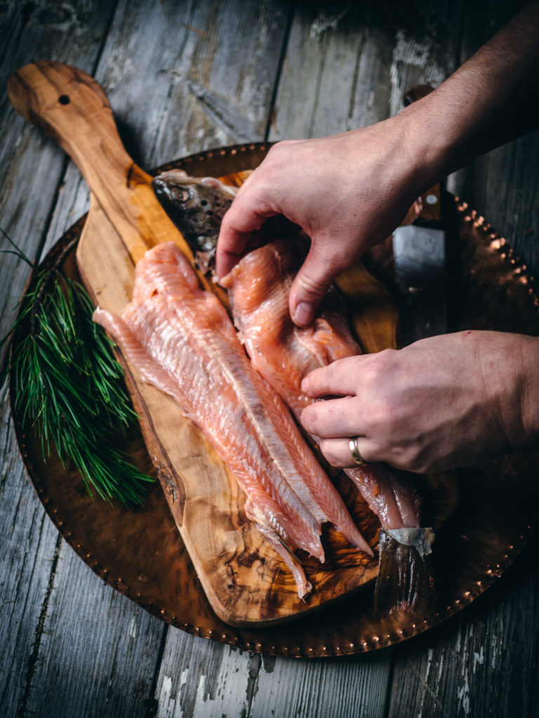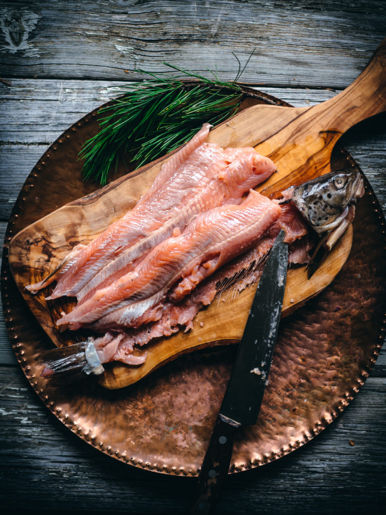 It starts with the fish, usually trout but it is possible to use other types of fresh-water fish. The fermentation process features the lactobacillus bacteria, which preserves the fish by creating lactic acid and lowering the pH level. A low pH level prevents the fish from spoiling enabling the mass of proteins, fat and nutrients to be stored a long time. While the fish are being stored, the enzymes (unaffected by the bacterial process) break down the proteins to amino acids and the fat to fatty acids. This enables the fish to taste savory. The longer the fish ferments, the more savory the taste will be. The intense smell, which receives a variety of reactions, comes from the hydrogen sulphide and acetic, propionic and butyric acids. (excerpt from The Nordic Cook Book)