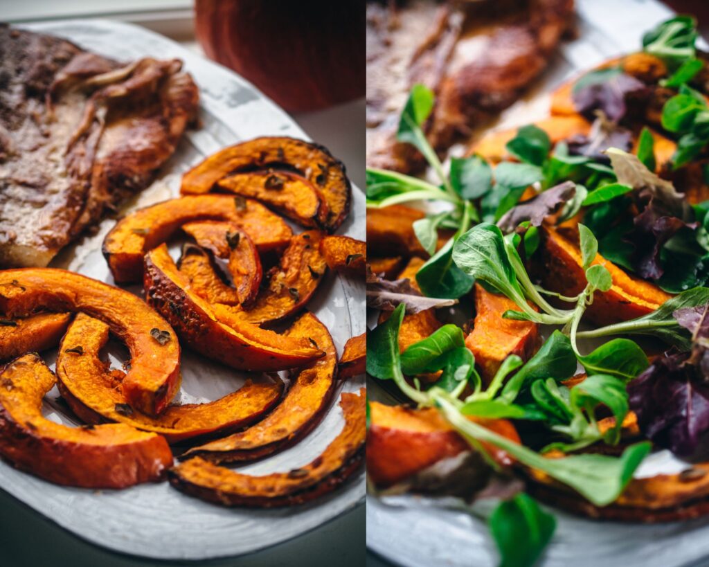 While autumn hands the baton over to winter, meals that are rich and satisfying, yet also bright and refreshing, provide a welcome balance of the two seasons. This pan-seared Steelhead trout with roasted pumpkin, blackberries, and goat cheese is one of those dishes. A simple and elegant salad with buttery trout that beckons everyone to the table.