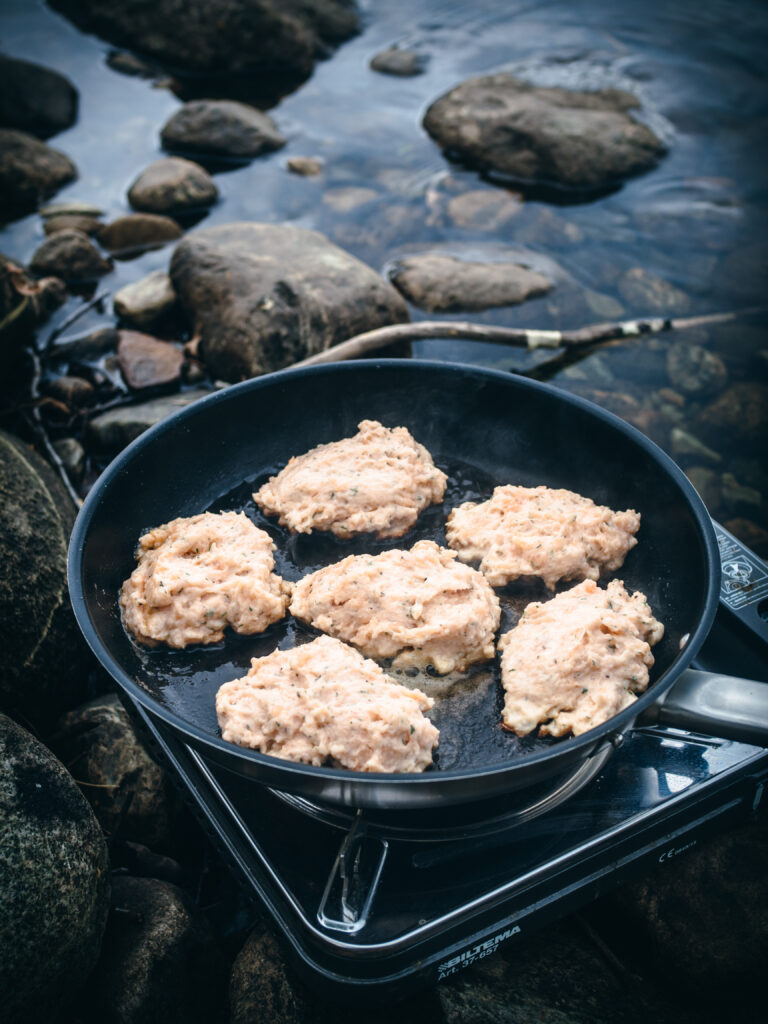Serve these warm as is or on top of bread with the mayo and salsa on top. Leftovers can easily be reheated or tossed into salads or wraps. The versatility of these salmon fish cakes means you can truly make these your own. They also make a wonderful meal to cook outdoors – just prepare the salmon fish cake dough at home and bring it along with everything you need to fry them outside.