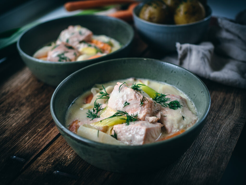 Fricassee is a long-standing tradition in Norwegian cuisine and is typically made with lamb, veal, chicken or hen. Though, in some instances, you might find fish used in place of meat. And since October is Seafood Month, what better way to celebrate than to use salmon from Norway for this decadent fricassee. Its pure taste, quality, and firm flesh match perfectly with this classic dish. Salmon from Norway is also nutrient dense with a balanced fat content, providing nourishment with every bite