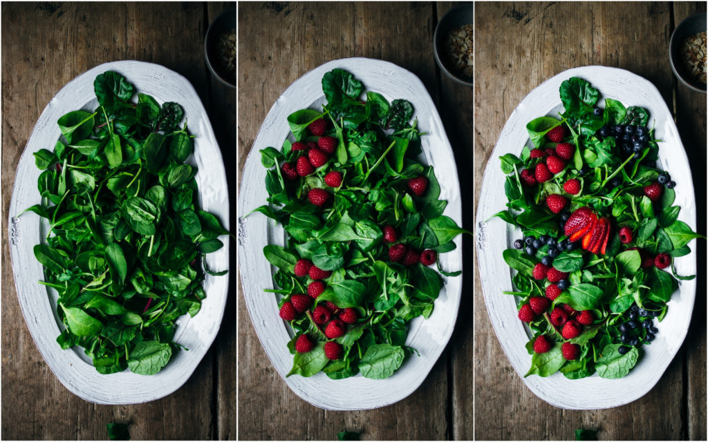 Berries are one of the many highlights of the summer. Fresh and sweet with eye-popping colors. As the garden begins to fill with an abundance of plants, my mind always heads toward lighter, summery dishes like salads, which feel particularly luxurious after the long, Norwegian winter. The combination of berries and garden greens in a salad offers an incredible array of textures with accents of sweetness, bitterness, and tartness.