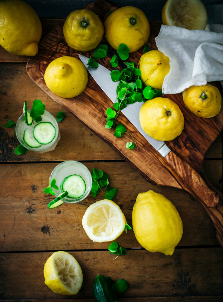 All you’ll need are some lemons, a good handful of wood sorrel, a cucumber, sugar, and water. Together, making up this delightful sorrel and cucumber lemonade. Though, you could forego the lemons altogether and use a lot more sorrel and still have a refreshing ‘lemony’ drink. It couldn’t be simpler.